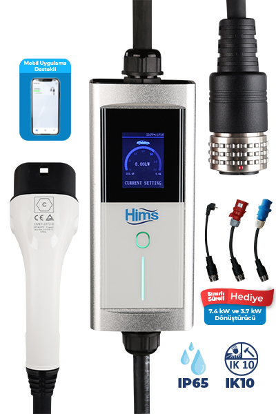 Hims 22kW Tip 2 Soketli Taşınabilir Elektrikli Araç Şarj Cihazı Hims 22kW Destekli Tip Alüminyum Kasa Taşınabilir Elektrikli Araç Şarj Cihazı NOT: TÜM ELEKTRİKLİ ARAÇ MODELLERİ İLE...