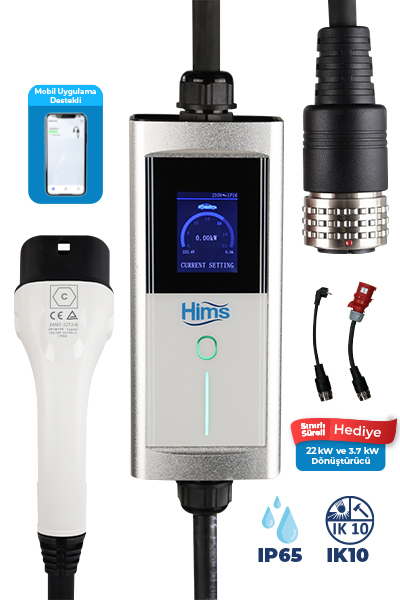 Hims 22kW Tip 2 Soketli Taşınabilir Elektrikli Araç Şarj Cihazı Hims 22kW Destekli Tip Alüminyum Kasa Taşınabilir Elektrikli Araç Şarj Cihazı NOT: TÜM ELEKTRİKLİ ARAÇ MODELLERİ İLE...